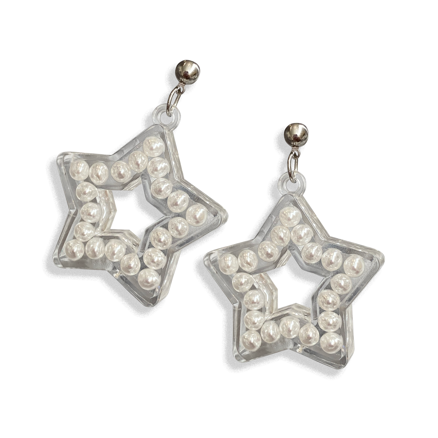 Acrylic encapsulated faux pearls, stainless steel posts.