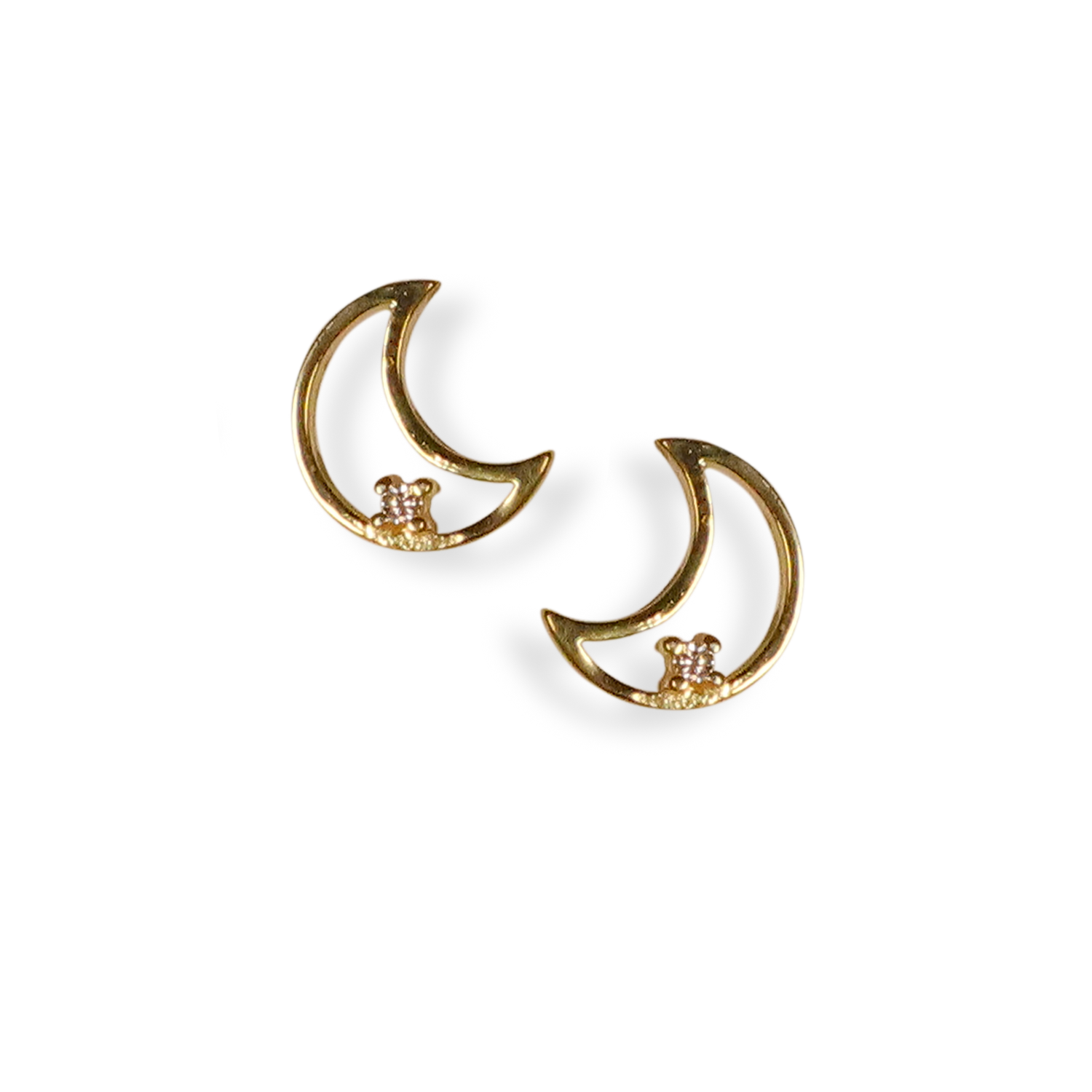 Super delicate moon silhouette studs that is simple, yet brilliant. Featuring a dainty cubic zirconia gem.