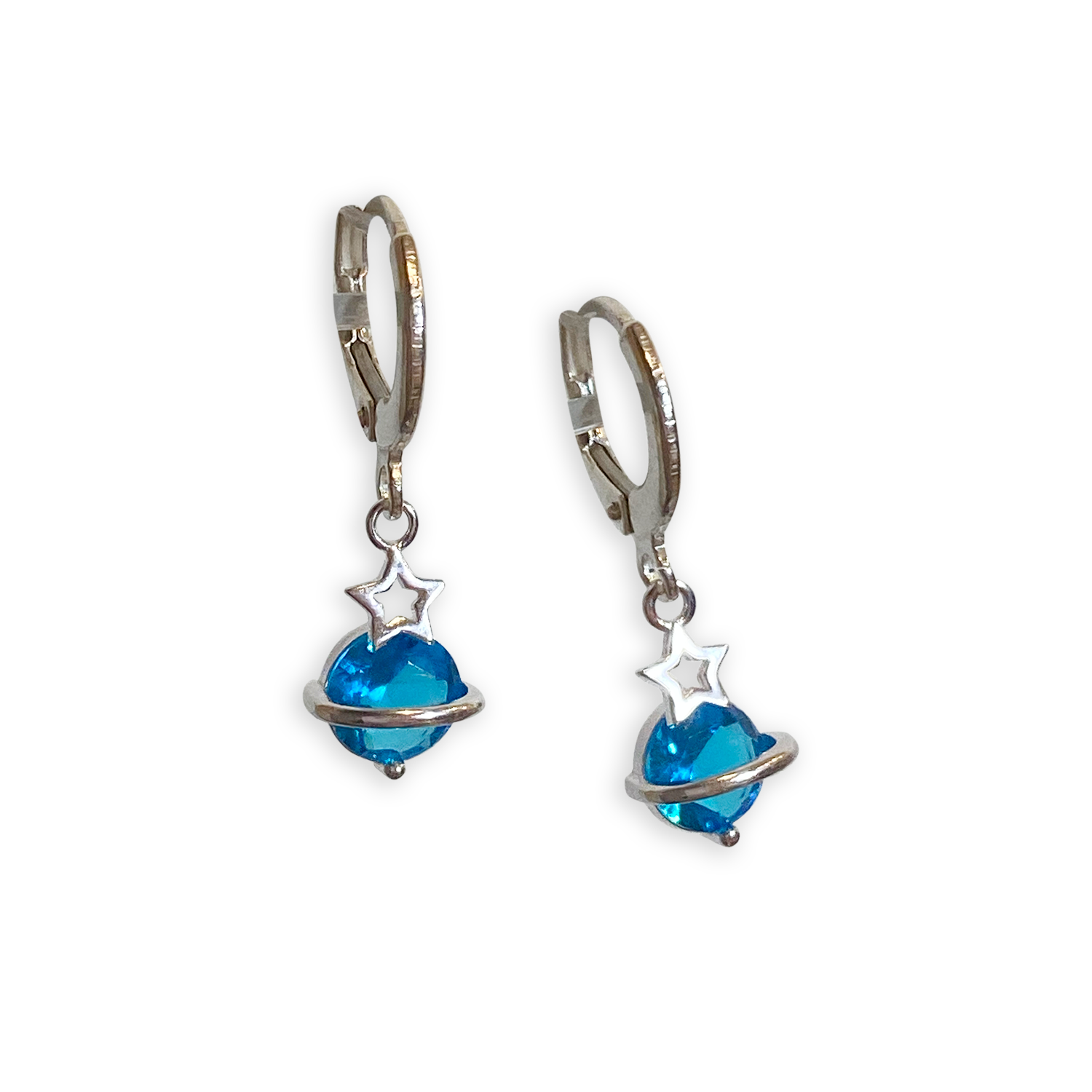 Cute and dainty huggie hoop earrings made of sterling silver. These beauties feature a little Saturn charm. Assembled at our SS studio.